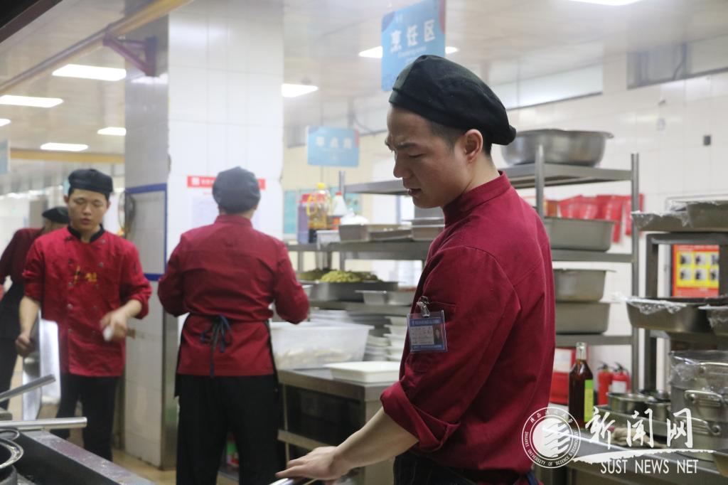 天還沒有全亮,大多數(shù)學生沉浸在夢鄉(xiāng),餐廳卻早已燈火通明。為了讓學生們吃上熱氣騰騰的飯菜、擁有良好的用餐環(huán)境,六點多的后廚已是一片忙碌,食堂的工作人員正精心的準備著一天的早餐。工作人員告訴做餐飲最重要的就是保持原材料的新鮮和口感,不斷的更新菜品,讓學生們吃到滿意的飯菜。雖然日復一日的重復性工作會有些繁瑣,但他們每天都做的無比認真。炊事員劉洋雖然年輕,卻已經(jīng)在沁園餐廳工作了兩年,他一邊忙著炸制早餐用的食物,一邊笑著說“不累,我們早已經(jīng)習慣了”,這聲簡簡單單的“習慣了”,背后卻是汗流浹背的堅持,是高溫為了保證學生吃的健康的責任感。劉洋是外地人,他一學期才能回家一次。盡管長期不能與家人見面,只能與家人視頻通話,但這并不影響他的工作狀態(tài)。每次做菜的時候,他都會想這是為自己的親人做的一餐,一定要做好。