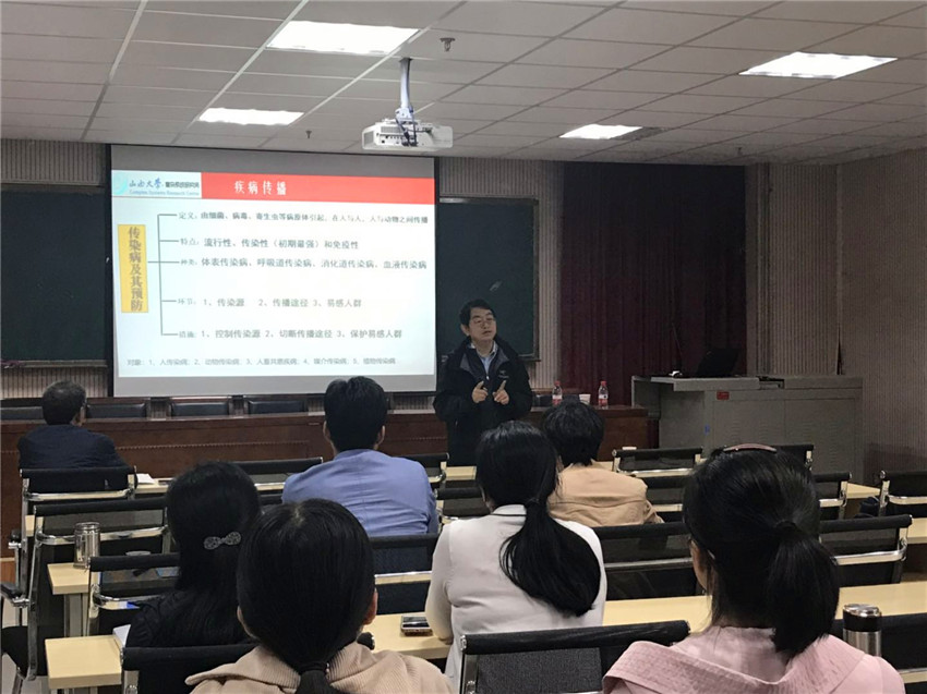 靳禎教授從傳染病傳播的特點(diǎn)出發(fā),介紹了確定性模型和隨機(jī)模型的建立以及國內(nèi)外研究現(xiàn)狀,并對(duì)傳染病傳播過程中存在的網(wǎng)絡(luò)結(jié)構(gòu)、社團(tuán)結(jié)構(gòu)和聚類相關(guān)信息等對(duì)疾病傳播影響的研究方法做了深入淺出的講解。