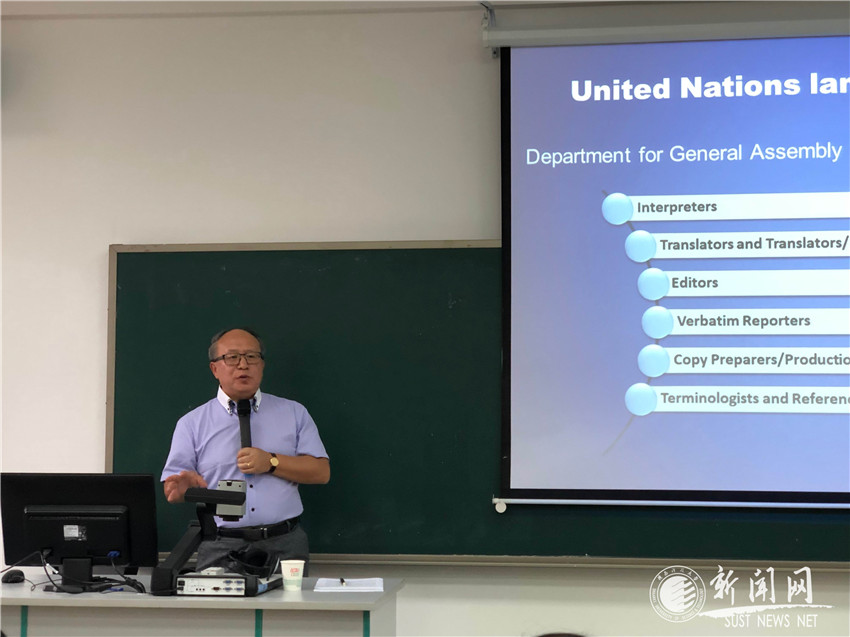 李正仁教授首先介紹了聯(lián)合國語言類工作人員的類別、崗位要求、崗位職責(zé)以及翻譯人員應(yīng)該具備的基本職業(yè)道德。隨后,就翻譯能力提升問題,李教授列舉了真實具體的翻譯案例,通過對比不同版本的譯文,李教授強調(diào)了準(zhǔn)確用詞的重要性,指出合格譯員應(yīng)具備辨別詞語間細(xì)微差別的能力。無論是英譯中,還是中譯英,譯員都要在理解原語的前提下,結(jié)合具體語境,準(zhǔn)確地傳達(dá)原語信息及立場。此外,李教授還分享了聯(lián)合國網(wǎng)站的翻譯培訓(xùn)材料,申請聯(lián)合國實習(xí)崗位的渠道等信息,鼓勵大家申請聯(lián)合國實習(xí)項目,體驗國際組織的工作環(huán)境,培養(yǎng)國際視野,充實人生經(jīng)歷。