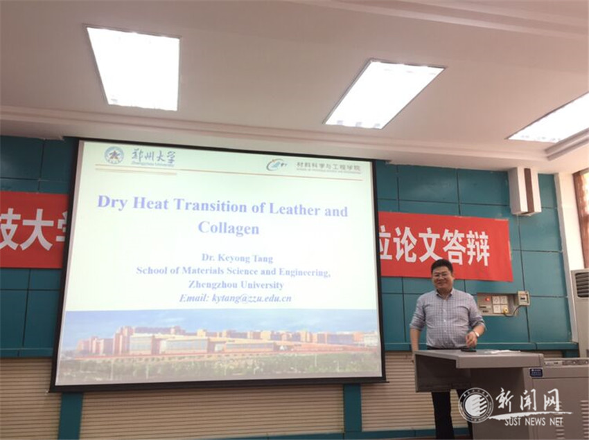 5月20日下午,應(yīng)研究生院和輕工科學(xué)與工程學(xué)院邀請(qǐng),鄭州大學(xué)材料科學(xué)與工程學(xué)院副院長(zhǎng)湯克勇教授作客我校“未央導(dǎo)師論壇”,在輕工學(xué)院學(xué)術(shù)報(bào)告廳為學(xué)院師生作了一場(chǎng)題為《Dry Heat Transition of Leather and Collagen》的學(xué)術(shù)報(bào)告。報(bào)告會(huì)由輕工學(xué)院副院長(zhǎng)呂斌致歡迎辭并主持,學(xué)院部分教師和博士碩士研究生參加了此次報(bào)告會(huì)。
