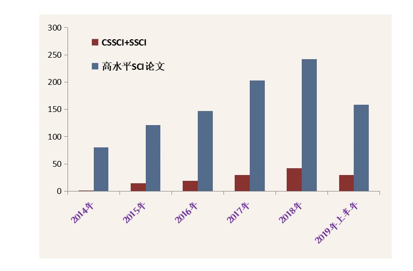 我校研究生2014.1-2019.4發(fā)表的CSSCI/SSCI、高水平SCI論文數(shù)據(jù)圖