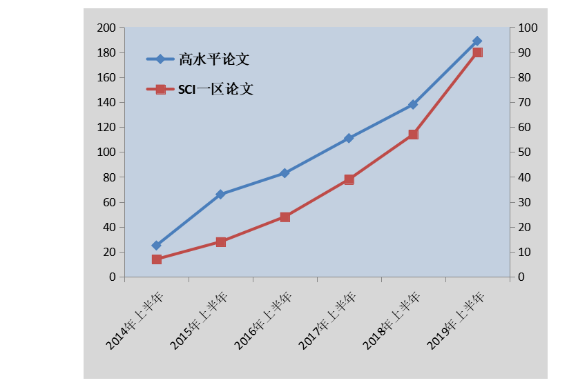 我校研究生2014-2019年上半年發(fā)表的高水平論文數(shù)據(jù)圖
