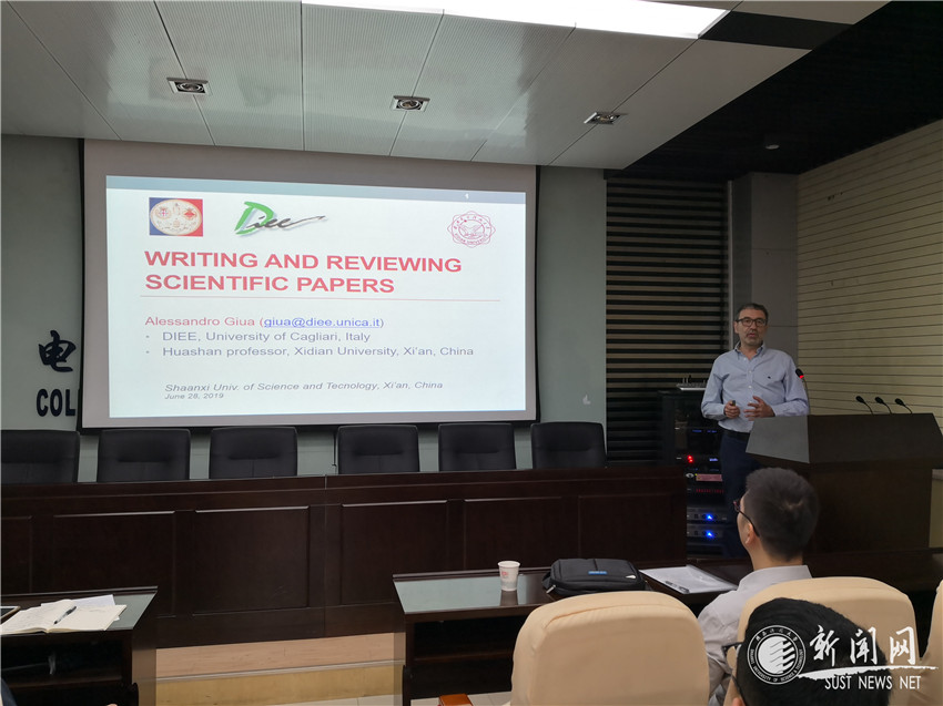 6月28日上午,應(yīng)我校研究生院、電氣與控制工程學(xué)院邀請(qǐng),意大利卡利亞里大學(xué)、法國(guó)艾克斯-馬賽大學(xué)教授AlessandroGiua作客我?!拔囱雽?dǎo)師論壇”,做了題為“Writing and reviewing scientific papers”的學(xué)術(shù)報(bào)告。本次會(huì)議由研究生院主辦,電控學(xué)院承辦,電控學(xué)院班子成員及相關(guān)學(xué)院師生參加了報(bào)告會(huì),會(huì)議由電控學(xué)院副院長(zhǎng)周強(qiáng)主持。