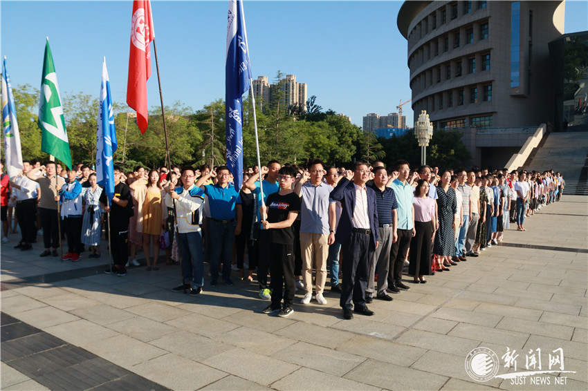 回首往昔牢記初心使命,面向未來勇立時(shí)代潮頭。為慶祝中國共產(chǎn)黨建黨98周年,激勵(lì)廣大黨員師生不忘初心、牢記使命,建功立業(yè)新時(shí)代。7月1日清晨,我校師生黨員代表近五百人在圖書館南廣場舉行“迎七一·慶祝建黨98周年”升旗儀式暨黨員集體宣誓活動(dòng)。校黨委副書記溫鋒、副校長李志健,學(xué)工部、人事處全體黨員干部及全體學(xué)生黨支部書記、支部委員參加了活動(dòng)。