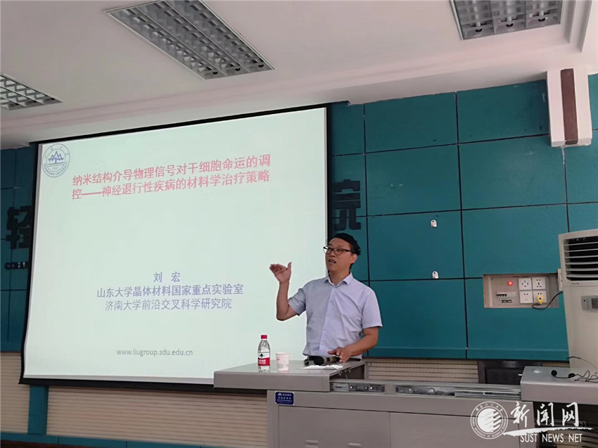 7月24日,應(yīng)我??萍继?、前沿院及輕工科學(xué)與工程學(xué)院邀請,山東大學(xué)晶體材料國家重點實驗室、濟(jì)南大學(xué)前沿交叉科學(xué)研究院劉宏教授作客我?!扒把乜茖W(xué)報告”,做了題為“納米結(jié)構(gòu)介導(dǎo)物理信號對干細(xì)胞命運(yùn)的調(diào)控——神經(jīng)退行性疾病的材料學(xué)治療策略”的學(xué)術(shù)報告。輕工學(xué)院相關(guān)專業(yè)教師、研究生參加了此次報告會。報告會由我校柔性引進(jìn)人才、加拿大工程院院士倪永浩教授主持。