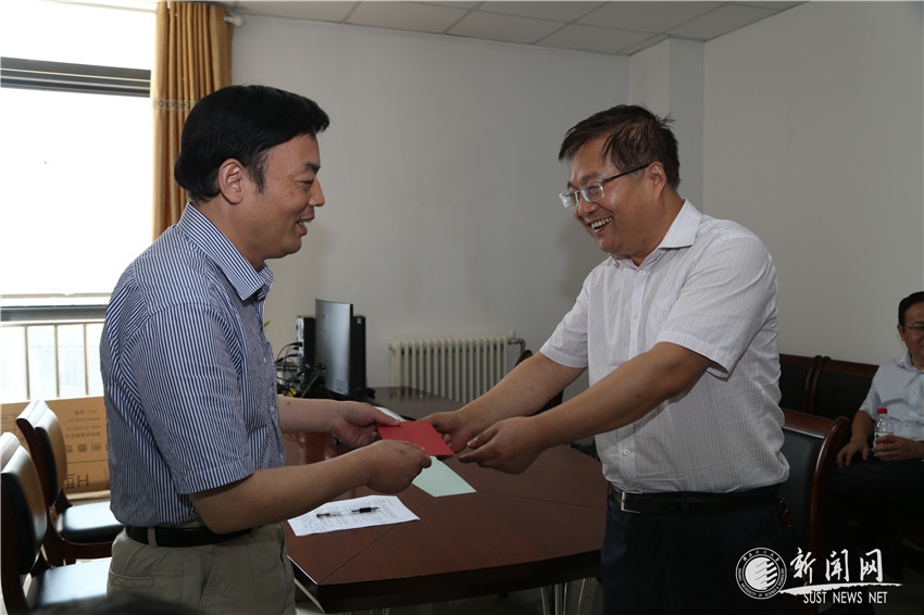 在文理學院,李智軍詳細了解了張小紅教授近期科研工作開展情況,并代表省委教育工委、省教育廳向張小紅教授發(fā)放了教師節(jié)慰問金,提前向他致以節(jié)日的問候。張小紅教授感謝工委及教育廳的關(guān)心,他表示,在陜科大“三創(chuàng)兩遷”大學精神的感召和鼓舞下,帶著為家鄉(xiāng)科教事業(yè)做貢獻的堅定信念,定會繼續(xù)積極投身學術(shù)研究,勤奮刻苦、勇攀高峰,為陜科大的人才培養(yǎng)、科學研究和學科建設(shè)等貢獻自己應有的力量。