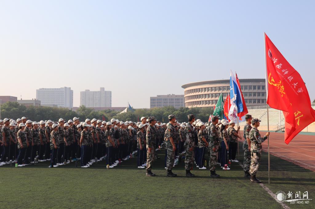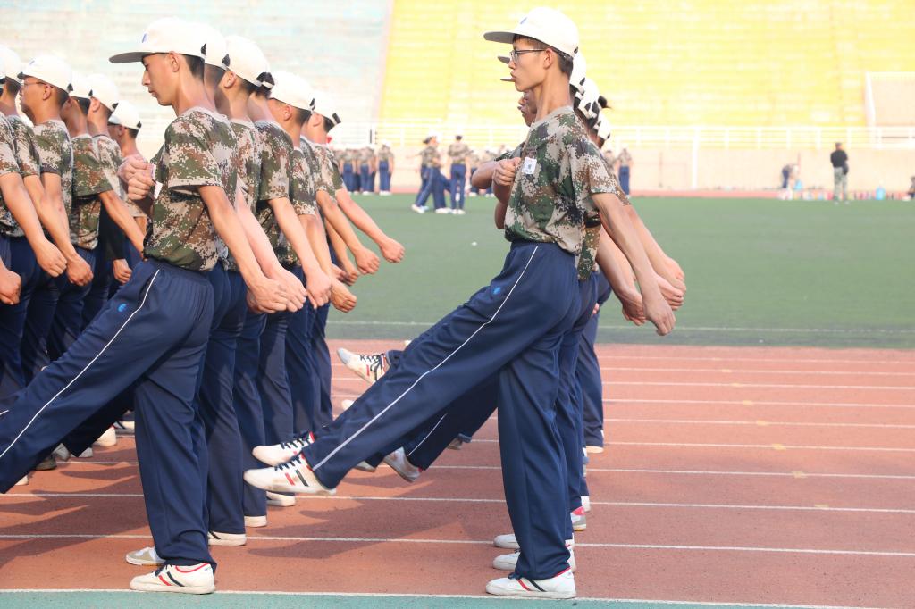 9月3日,隨著一聲聲響亮的口令,學(xué)員們的動作整齊劃一。站軍姿,踢正步,調(diào)整手臂和抬腿的高度,每一個動作都力求做到極致與完美,這些稚氣未脫的“零零后”們都在用不服輸?shù)木髲娮C明自己。高溫的天氣,他們依然堅持著,吶喊著,汗水劃過他們稚嫩的臉龐,但他們并沒有停下自己向前邁進的腳步。