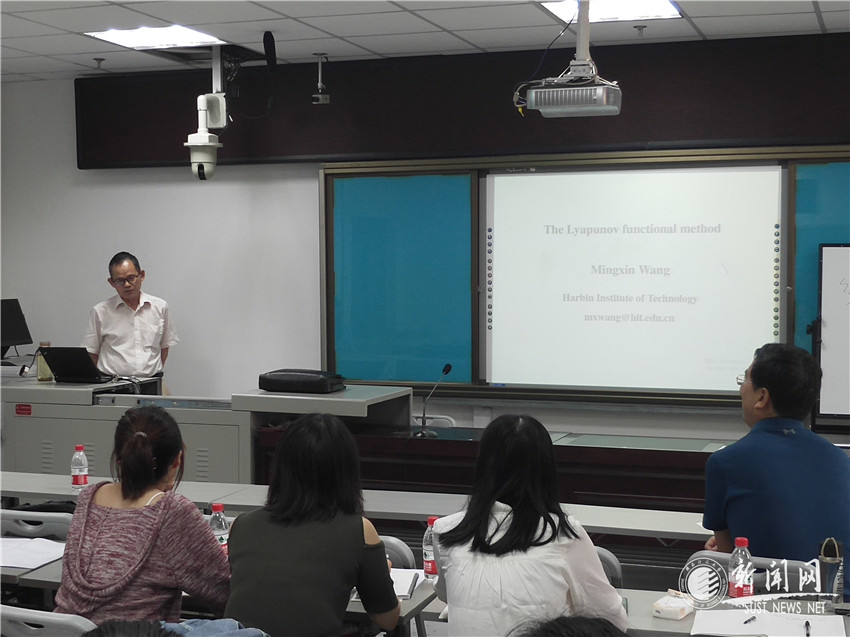 9月29日上午,應(yīng)文理學(xué)院邀請,哈爾濱工業(yè)大學(xué)王明新教授作客我?!扒把乜茖W(xué)報(bào)告”,做了題為“The Lyapunov functional method”的學(xué)術(shù)報(bào)告。報(bào)告會(huì)由文理學(xué)院副院長郭改慧教授主持,文理學(xué)院數(shù)學(xué)系相關(guān)教師及研究生參加了此次報(bào)告會(huì)。