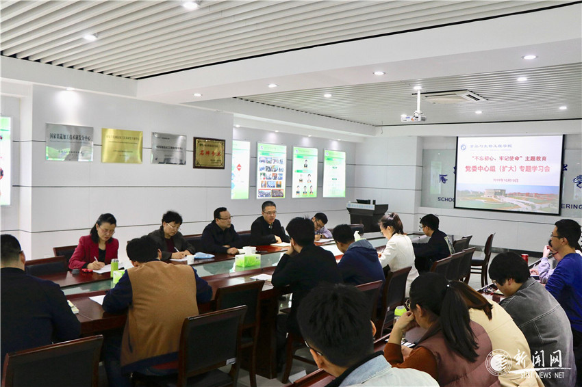 食品與生物工程學(xué)院黨委于10月10日召開中心組(擴大)學(xué)習(xí)會,圍繞“堅守初心和使命,弘揚奮斗精神”主題開展集中學(xué)習(xí)研討。校黨委副書記王道安參加指導(dǎo)集中學(xué)習(xí),學(xué)校主題教育第一指導(dǎo)小組王淑霞一行參加學(xué)習(xí)會,學(xué)院黨委中心組成員、所屬各黨支部書記參加會議,會議由食品學(xué)院黨委書記訾榮祿主持。