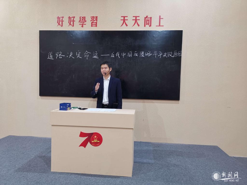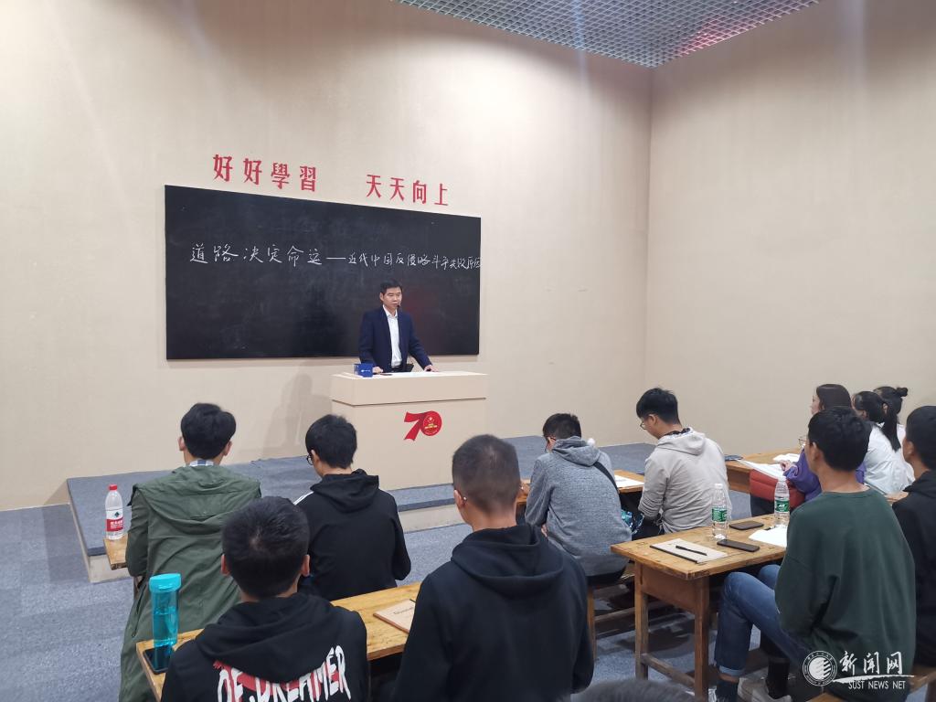 大粉筆、油漆的黑板、普通的小木桌、長條凳,10月10日下午,在陜西省慶祝中華人民共和國成立70周年成就展上,來自我校馬克思主義學院的武端利副教授為40名大學生和部分參觀群眾上了一堂以《道路決定命運——近代中國反侵略斗爭失敗的原因》的現(xiàn)場思政課。