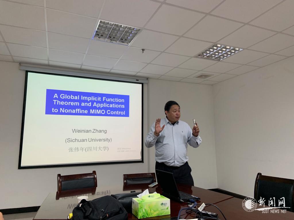 10月9日下午,應文理學院邀請,四川大學數(shù)學學院張偉年教授作客我?!扒把乜茖W報告”,在理科樓423會議室為數(shù)學系教師代表做了題為“一個全局隱函數(shù)定理及其在非仿射MIMO控制中的應用”的學術報告。報告會由文理學院副院長郭改慧主持。