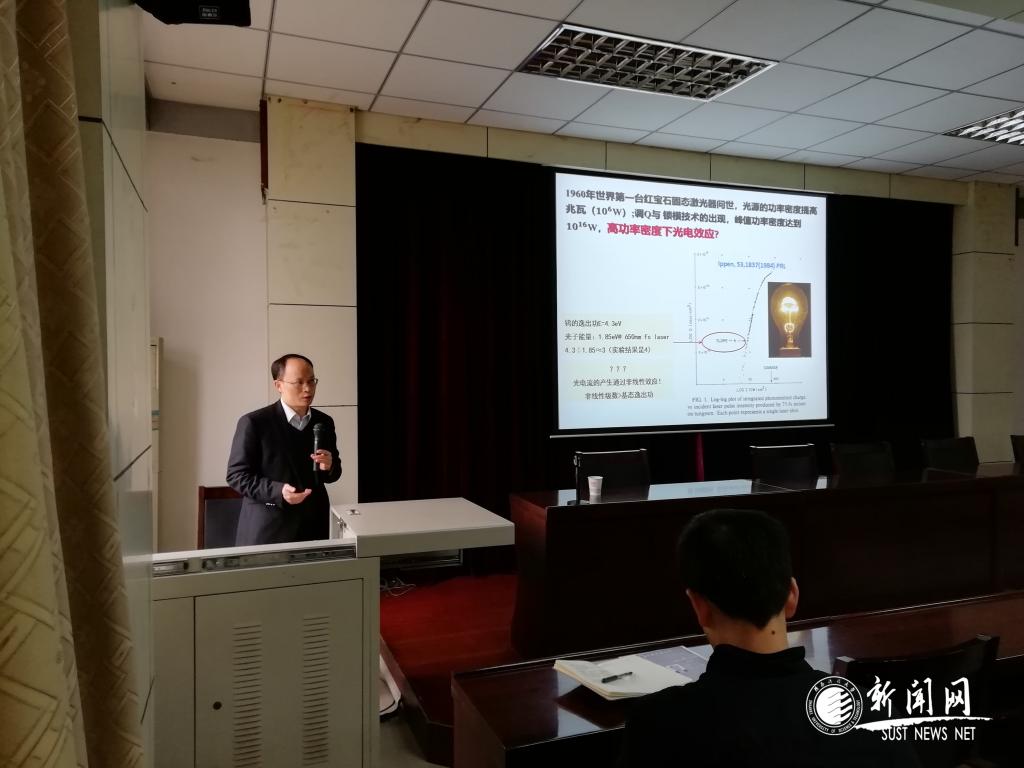 11月8日上午,西北工業(yè)大學(xué)程光華教授在我校機(jī)電工程學(xué)院學(xué)術(shù)報(bào)告廳做了題為“飛秒激光微加工機(jī)理、技術(shù)和應(yīng)用”的“前沿科學(xué)報(bào)告”。機(jī)電工程學(xué)院副院長(zhǎng)楊立軍教授主持報(bào)告,相關(guān)專(zhuān)業(yè)師生到場(chǎng)參加。