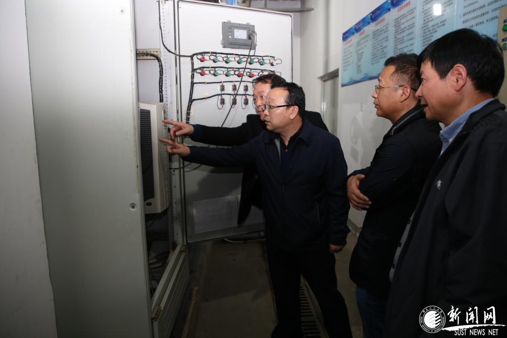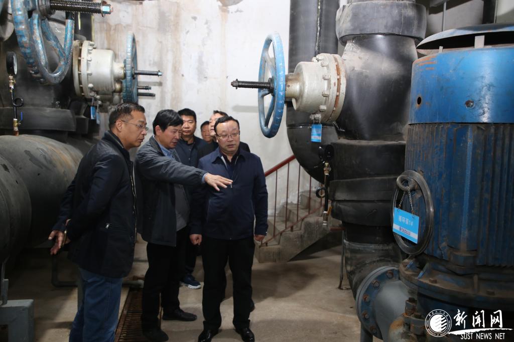 在教學(xué)區(qū)交換站,王道安在聽取相關(guān)工作人員匯報(bào)后詳細(xì)了解了供暖工程的維修改造及具體運(yùn)行情況,并對(duì)后勤的供暖保障工作給予充分肯定。