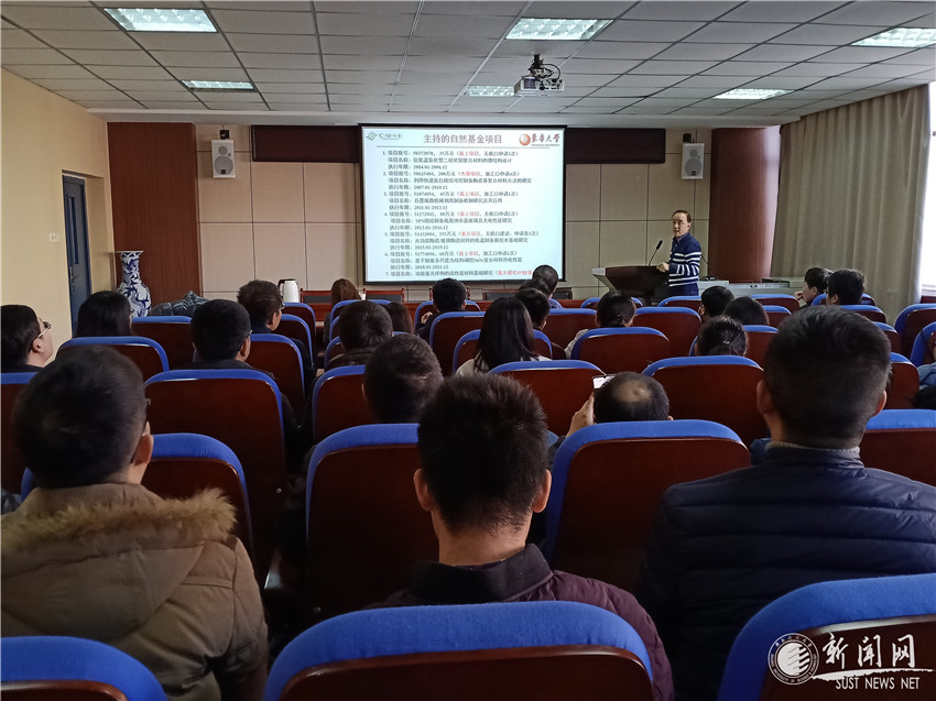 12月27日,受我校材料科學(xué)與工程學(xué)院邀請(qǐng),東華大學(xué)功能材料研究所國(guó)家杰出青年科學(xué)基金獲得者江莞教授作客我?!扒把乜茖W(xué)報(bào)告”,做了題為“淺談基金申報(bào)和評(píng)審過程中心得體會(huì)”的報(bào)告。會(huì)議由材料學(xué)院院長(zhǎng)朱建鋒主持,副院長(zhǎng)劉輝、王卓出席會(huì)議,材料學(xué)院2020年擬申報(bào)自然科學(xué)基金的教師和博士生參加了此次學(xué)術(shù)報(bào)告。