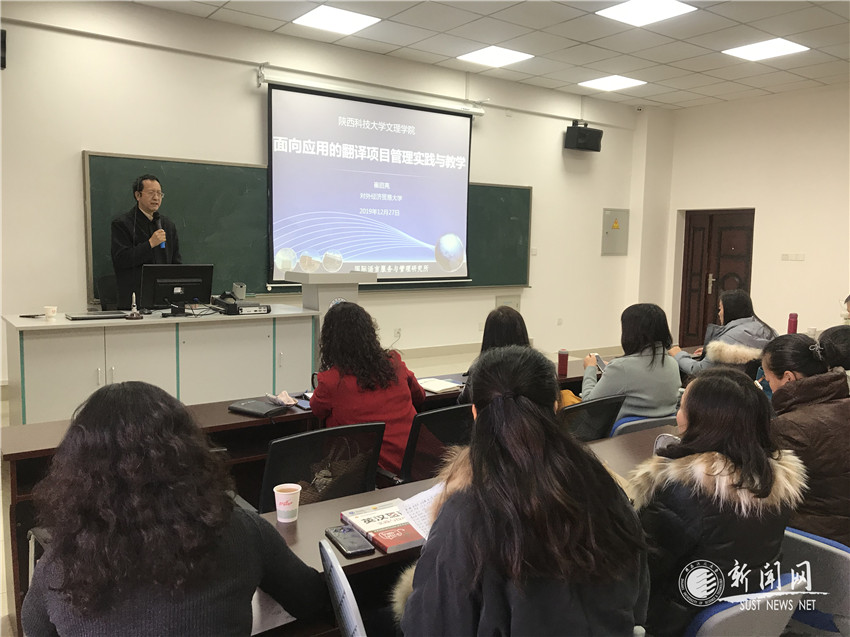12月27日上午,“未央導(dǎo)師論壇”系列學(xué)術(shù)報(bào)告之《面向應(yīng)用的翻譯項(xiàng)目管理時(shí)間與教學(xué)》在教學(xué)樓A座MTI中心舉行,對(duì)外經(jīng)濟(jì)貿(mào)易大學(xué)英語(yǔ)學(xué)院副教授、碩士研究生導(dǎo)師、國(guó)際語(yǔ)言服務(wù)與管理研究所副所長(zhǎng)崔啟亮教授受邀作客我?!拔囱雽?dǎo)師論壇”。本次講座由文理學(xué)院院長(zhǎng)劉建科主持。