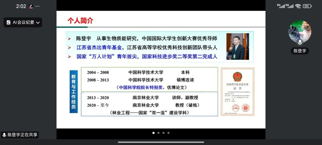 陳登宇,南京林業(yè)大學(xué)教授、博士生導(dǎo)師,國家重大人才工程青年項目入選者,江蘇省高等學(xué)校優(yōu)秀科技創(chuàng)新團(tuán)隊帶頭人,中國國際大學(xué)生創(chuàng)新大賽優(yōu)秀導(dǎo)師。主要從事生物質(zhì)熱解氣化領(lǐng)域的教學(xué)、科研和產(chǎn)業(yè)化推廣工作。主持國家重點(diǎn)研發(fā)計劃課題、江蘇省杰青等項目,在Angew. Chem. Int. Ed.、Renew. Sustain. Energy Rev.等期刊發(fā)表論文60余篇。研究成果入選2022年和2024年中國林草科技十大進(jìn)展,并得到國家部委采納推廣,獲國家科技進(jìn)步獎二等獎(排2)、中國產(chǎn)學(xué)研合作促進(jìn)會科技創(chuàng)新人物獎、中國科學(xué)院院長特別獎等獎勵。