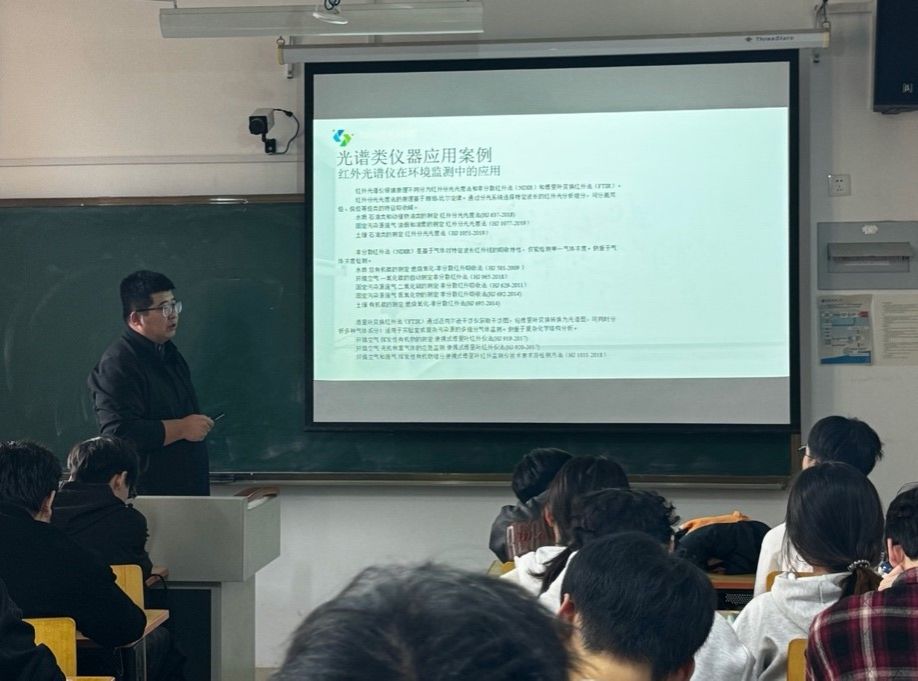 10月30日,應環(huán)境科學與工程學院(碳中和科學與工程學院)、研究生院邀請,陜西科儀陽光檢測技術服務有限公司環(huán)境技術負責人李丁一高工,做客陜西科技大學“未央導師論壇”,作了題為“環(huán)境分析儀器最新進展及其應用案例”的學術報告。報告會由環(huán)境學院副院長陳慶彩主持,學院相關方向師生參加了此次報告會。